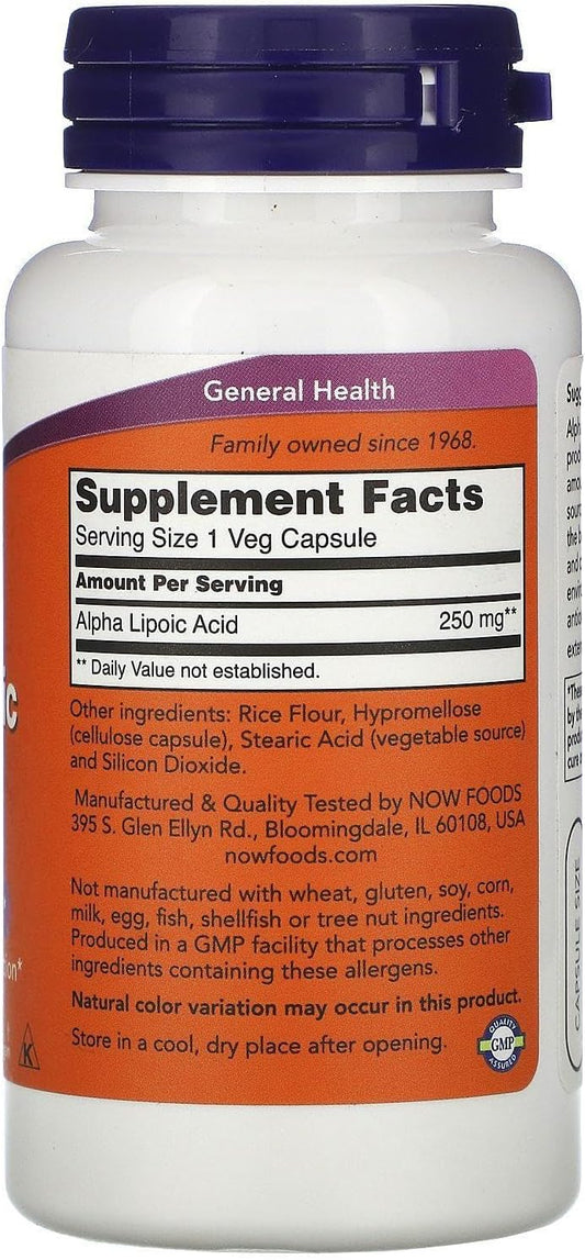 Now Foods Alpha Lipoic Acid Dietary Supplement, 60 Capsules, 250mg