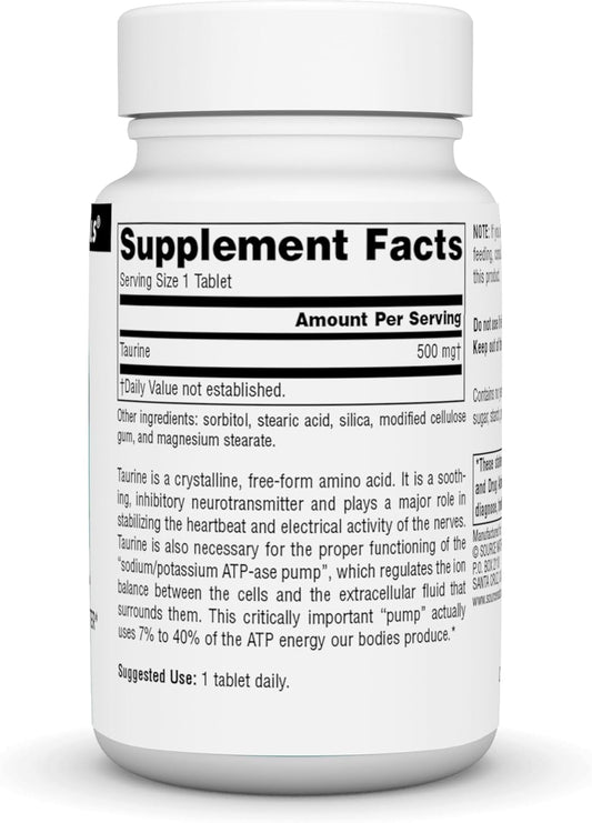 Taurine 500 mg Tablets by Source Naturals Inc. - Pack of 60Vendor:Source NaturalsRegular price $91.34 AUDRegular priceUnit price / per-