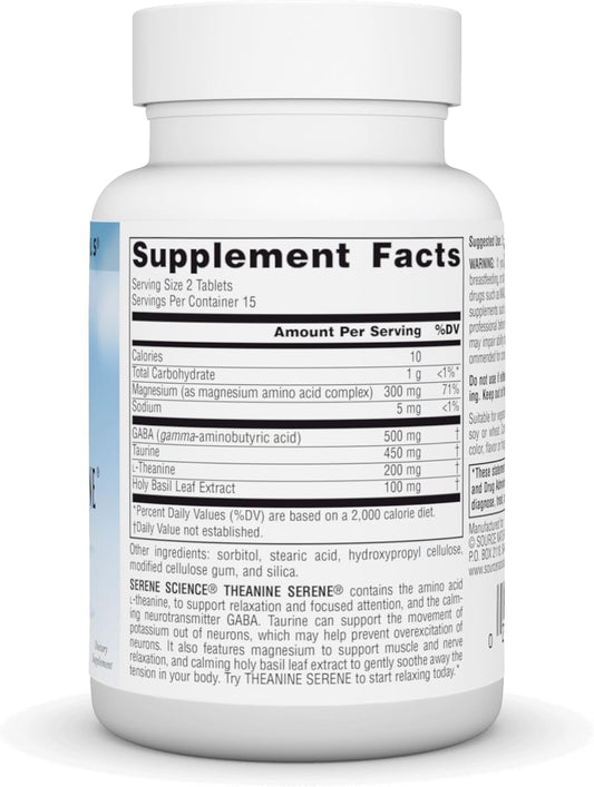 Source Naturals Theanine Serene: Calm Mind & Body Support with GABA - Vegetarian Formula - 30 TabletsVendor:Source NaturalsRegular price $90.23 AUDRegular priceUnit price / per-