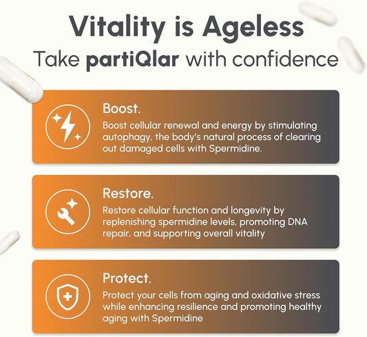 High-Quality Spermidine Supplements - 99% Purity - 8mg per Capsule - Anti-Inflammatory & Longevity Support - 60 Capsules - USA MadeVendor:partiQlarRegular price $162.28 AUDRegular priceUnit price / per-