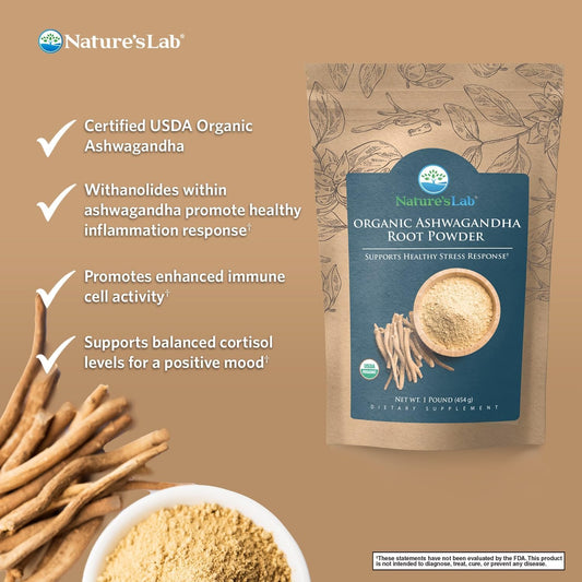 1lb Bag of Nature's Lab Organic Ashwagandha Root Powder - 227 Servings for Stress Relief and Immune SupportVendor:Nature's LabRegular price $114.74 AUDRegular priceUnit price / per-