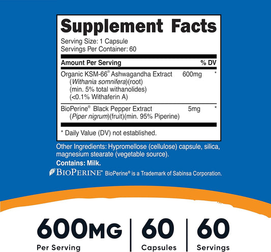 Nutricost KSM-66 Ashwagandha Root Extract Capsules - 600mg, 30 Count - Enhanced with BioPerine - 5% WithanolidesVendor:NutricostRegular price $94.99 AUDRegular priceUnit price / per-