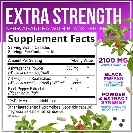 Extra Strength Ashwagandha for Women - 2,100mg Pure Powder Antioxidant Support with Black Pepper - Vegan Adaptogen Formula for Energy & Immune Support - 60 CapsulesVendor:Hello Lovely!Regular price $89.38 AUDRegular priceUnit price / per-