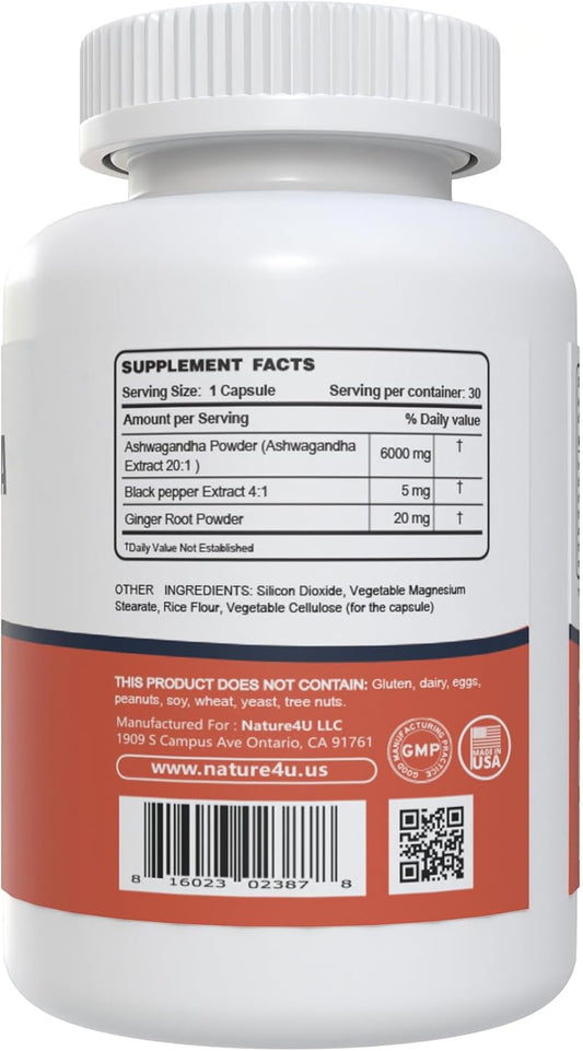 Maximum Strength Nature4U Ashwagandha Capsules with Black Pepper and Ginger Root for Stress and Mood SupportVendor:Nature4URegular price $94.89 AUDRegular priceUnit price / per