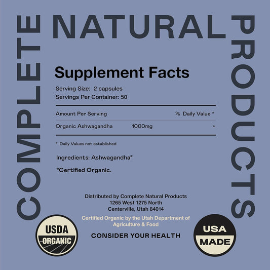 Organic Ashwagandha Capsules - 100 Count 500mg Pure Supplement for Calming SupportVendor:Complete Natural ProductsRegular price $117.13 AUDRegular priceUnit price / per-