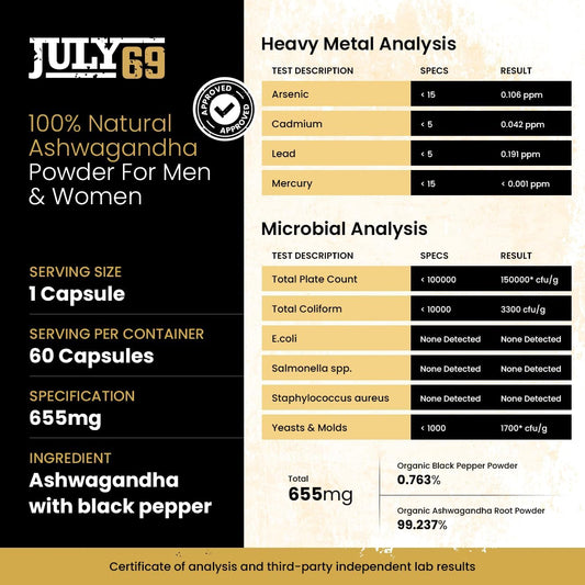Organic Ashwagandha Capsules with Black Pepper for Energy and Immunity - 60 Capsules, 655mg, Root Extract Complex, Pure Nature Made Supplement, Third-Party Tested for Men & WomenVendor:JULY69Regular price $96.96 AUDRegular priceUnit price / per-