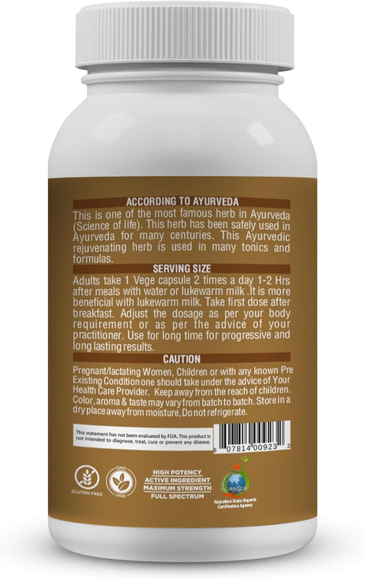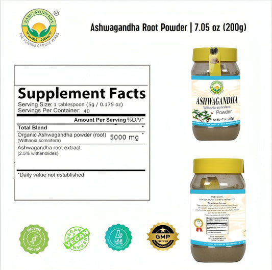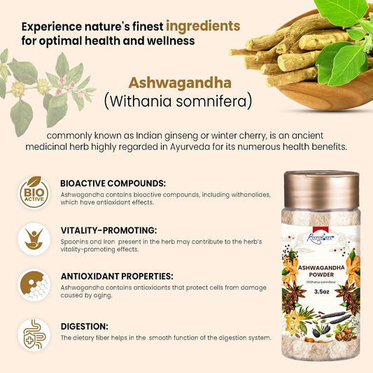 100% Natural Organic Ashwagandha Powder - Vegan, Gluten-Free, Kosher, Non-GMO, Uplift Mood - Herbal Supplement - 8oz