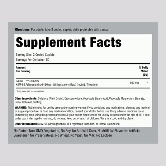 Advanced Complex Ashwagandha and L-Theanine Supplement 800mg | 100 Caplets | Piping Rock KSM-66 | Vegan, Non-GMO, Gluten Free