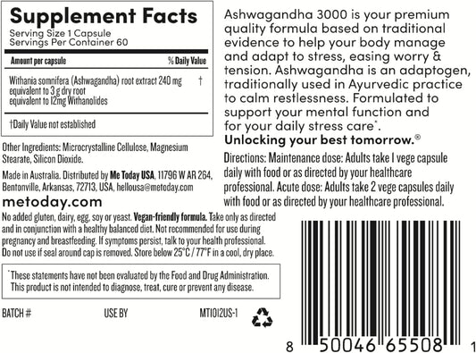 High Strength Ashwagandha Supplements for Stress Relief & Mental Support - Vegetarian Capsules (60 Count)