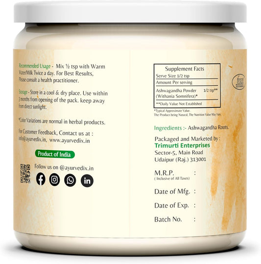 Organic Ashwagandha Root Powder in Reusable Jar - 5.29oz | Raw Indian Withania Somnifera Supplement Powder | Ayurvedic Herbal