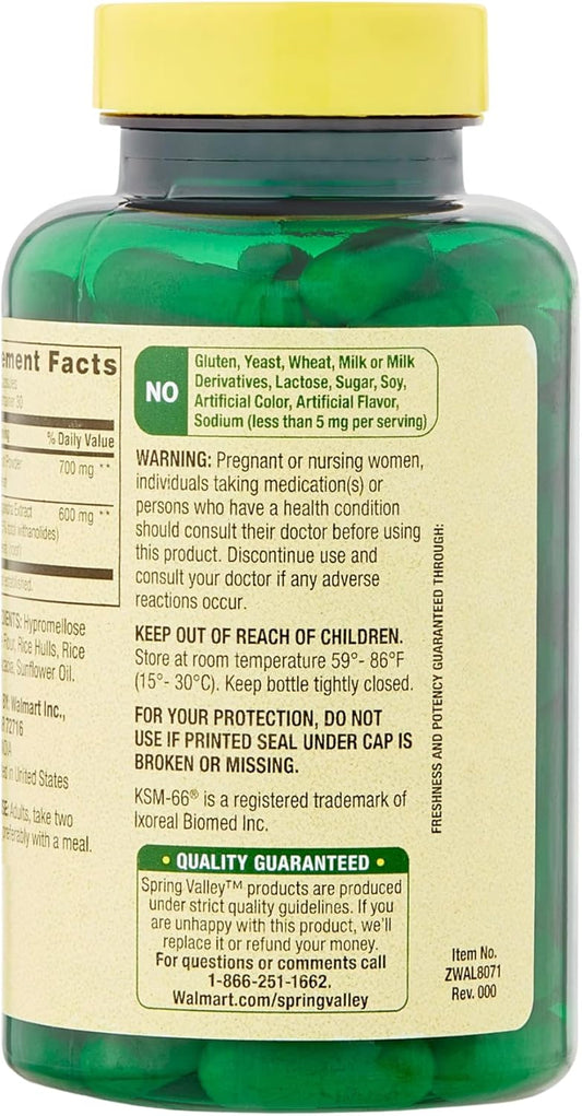 Spring Valley Ashwagandha 1300mg Capsules - Extra Strength Dietary Supplement by Venancio's Shop (60 Pills)