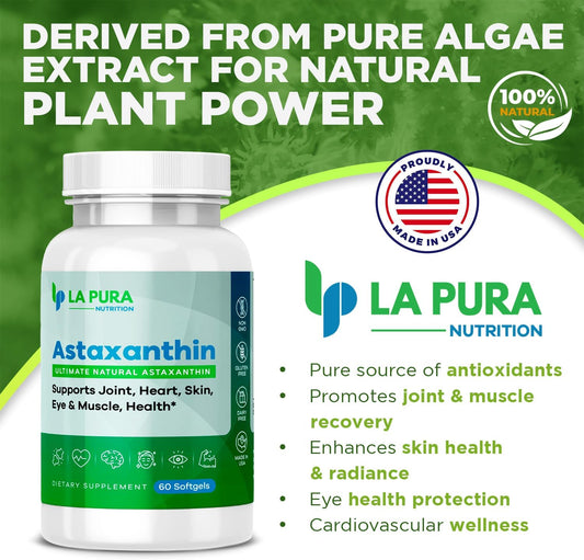 LaPura Ultimate Astaxanthin 10mg Softgels - Pure & Non-GMO Algae Supplement for Joints, Heart, Brain, Skin, Eyes, Muscles - 60 Capsules, Made in USAVendor:LaPuraRegular price $114.65 AUDRegular priceUnit price / per-