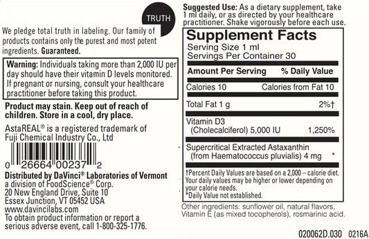 Davinci Laboratories Astaxanthin D3 Liquid Supplement - 1 fl oz BottleVendor:DaVinci Laboratories of VermontRegular price $136.88 AUDRegular priceUnit price / per-