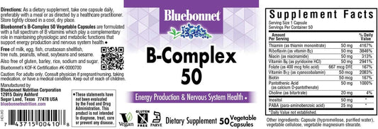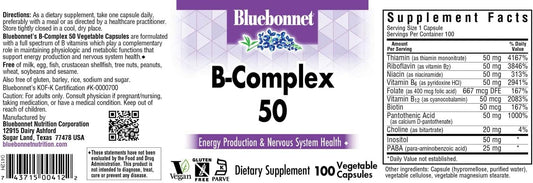 Bluebonnet Nutrition B Complex 50 Capsules - 100 Vegetable CapsulesVendor:BluebonnetRegular price $108.85 AUDRegular priceUnit price / per-