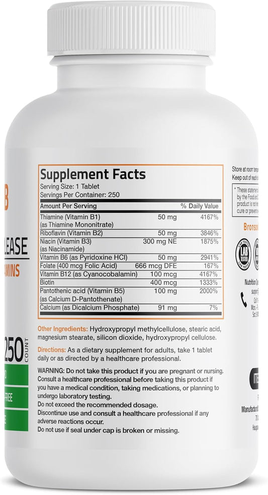 Bronson Super B Vitamin B Complex Sustained Release - 250 Tablets with Vitamin B1, B2, B3, B6, Folic Acid, B12 - All B VitaminsVendor:BronsonRegular price $144.39 AUDRegular priceUnit price / per-