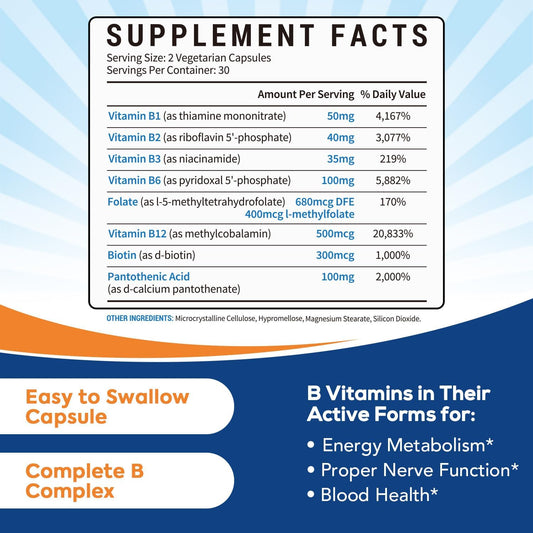 Professional Strength MethylPro B Complex - Vitamin B & L-Methylfolate Supplement for Energy, Mood, & Immune Support - 30 CapsulesVendor:MethylProRegular price $162.08 AUDRegular priceUnit price / per-