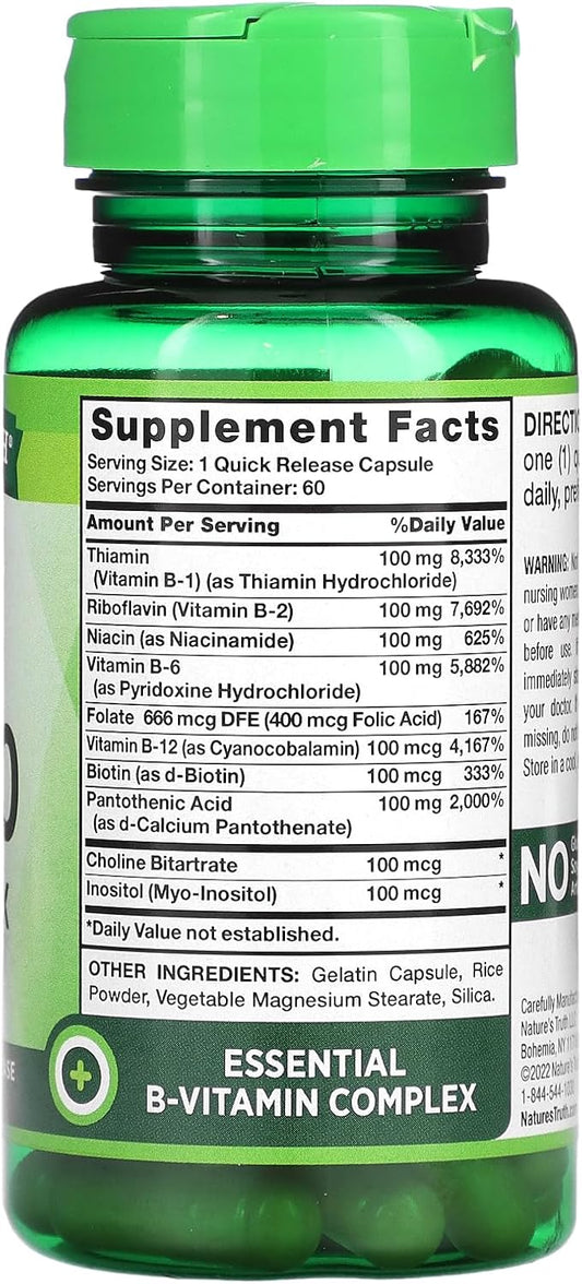 High Potency Nature's Truth Vitamin B Complex Capsules - B-100 | 60 Count | Non-GMO & Gluten FreeVendor:Nature's TruthRegular price $94.98 AUDRegular priceUnit price / per-