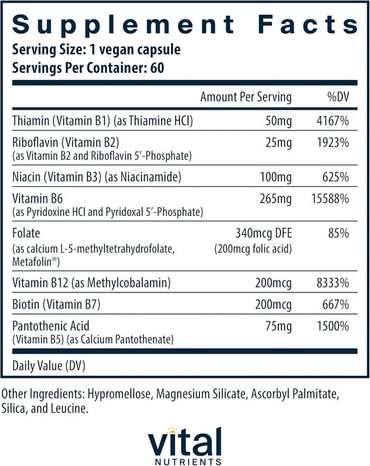 High-Potency Vegan Vitamin B6 + B Complex Capsules for Energy, Metabolism, Heart Health - Gluten, Dairy, Soy Free - 60 Count