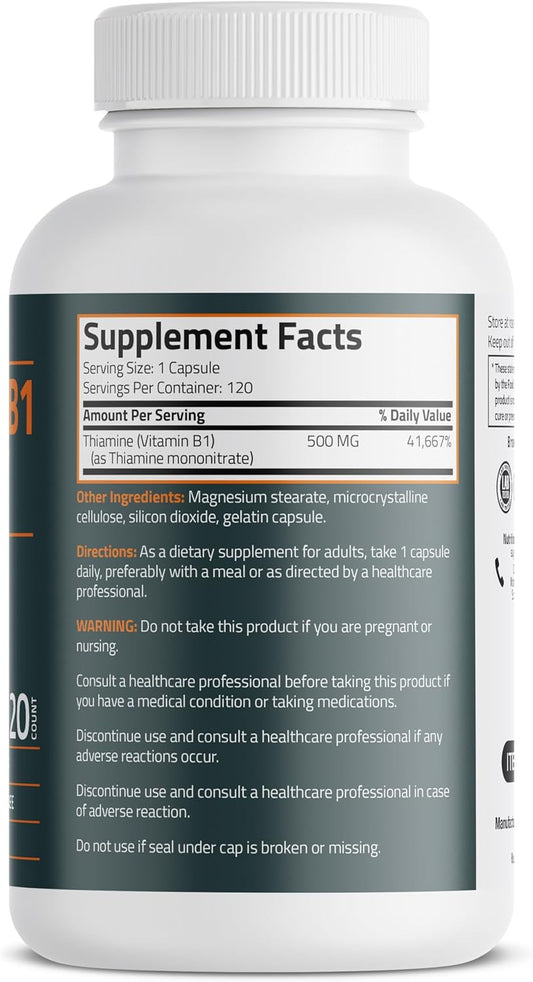 High Potency Bronson Vitamin B1 500 MG Extra Strength Non-GMO Capsules - 120 CountVendor:BronsonRegular price $107.34 AUDRegular priceUnit price / per-