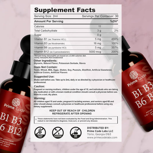 B Complex Liquid Vitamin Drops with Thiamine for Adults - High Absorption Immune Support - Non-GMO Gluten-Free