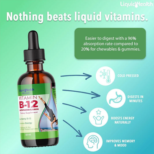 LIQUIDHEALTH Vitamin B-12 Liquid Supplement, 2 Fl Oz Bottle