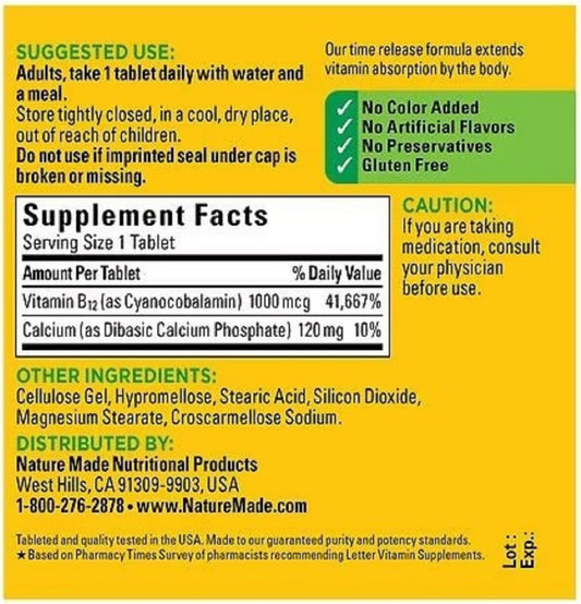 Time Release Nature Made Vitamin B12 1000 mcg Supplement for Energy Metabolism - 75 Tablets