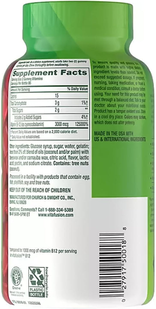 Vitafusion Extra Strength Cherry Flavored Vitamin B12 Gummies - Energy & Nervous System Support - 170 Count, 85 Day Supply