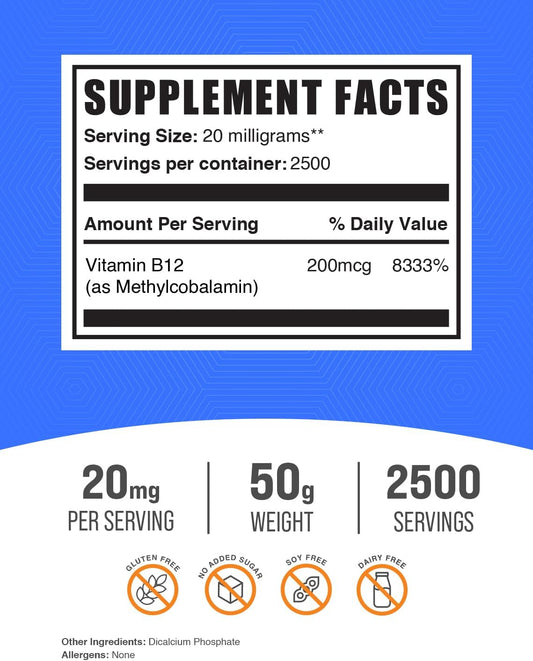 BulkSupplements.com Methylcobalamin B12 Powder - 20mg per Serving, Gluten Free B12 Supplement - Essential B Vitamin, 50g (1.8 oz) - Pack of 1Vendor:BulkSupplementsRegular price $104.80 AUDRegular priceUnit price / per-