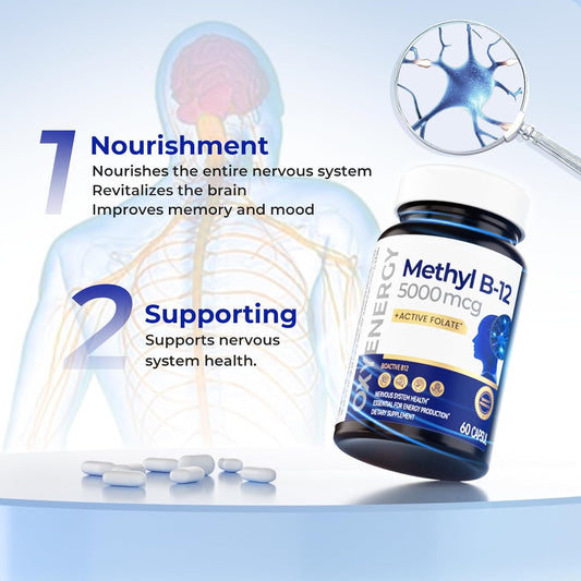 High Potency OxyEnergy Vitamin B12 Supplement with Folate - 5000mcg Methyl B-12 for Energy & Cognitive Support - 120 Capsules, 2 Month SupplyVendor:OxyEnergyRegular price $162.28 AUDRegular priceUnit price / per-