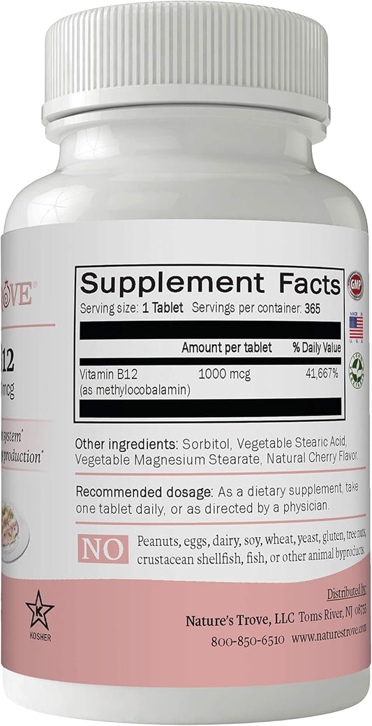 365 Count Nature's Trove Vitamin B12 Methylcobalamin 1000 mcg Chewable Cherry Flavor TabletsVendor:Nature's TroveRegular price $99.92 AUDRegular priceUnit price / per-