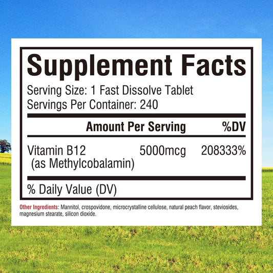 Vegan Sublingual Vitamin B12 5000mcg Tablets, Peach Flavor, Supports Energy & Nervous System, 240 Fast Dissolve TabletsVendor:Innate VitalityRegular price $124.63 AUDRegular priceUnit price / per-