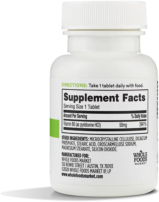 Whole Foods Market 365 Vitamin B6 50mg Tablets - Pack of 100 TabletsVendor:365 by Whole Foods MarketRegular price $98.93 AUDRegular priceUnit price / per-