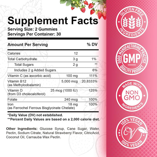 5000 mcg Methylcobalamin Vitamin B12 Gummies with Iron, Vitamin C, D3, Folate - Energy & Metabolism Support, Immune Boost - Chewable Supplement for Men & Women - Strawberry FlavorVendor:ReviNutraRegular price $114.74 AUDRegular priceUnit price / per-