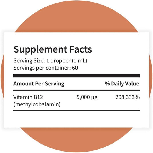 Citrus Flavored Vegan Liquid Drops - Pattern Wellness Vitamin B12 Supplement - 5000 mcg Methylcobalamin - Immune & Cardiovascular Support - 2 fl. ozVendor:Pattern WellnessRegular price $141.83 AUDRegular priceUnit price / per-