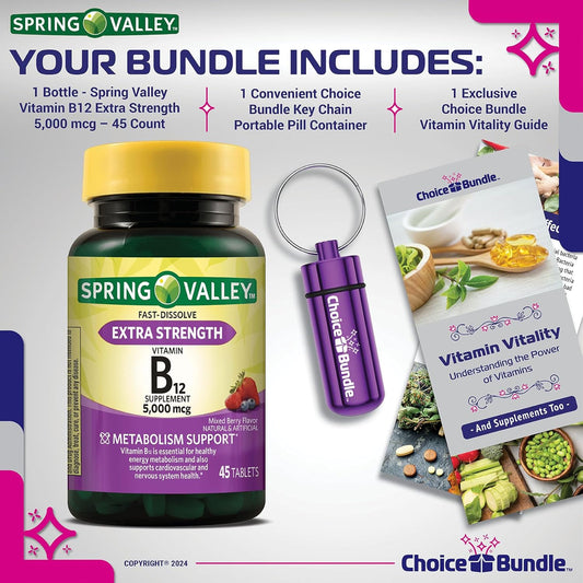 Spring Valley Vitamin B12 Fast Dissolve Tablets 5000 mcg Bundle Pack with Vitamin Guide & Pill Container - 45 Ct - Metabolism SupportVendor:CHOICE BUNDLERegular price $112.26 AUDRegular priceUnit price / per-