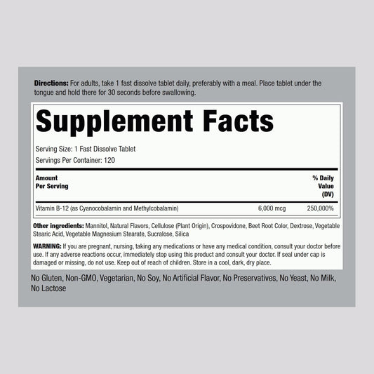 Berry Flavored Sublingual B12 Complex 6000 mcg Tablets | 120 Fast Dissolve | Vegetarian & Non-GMO