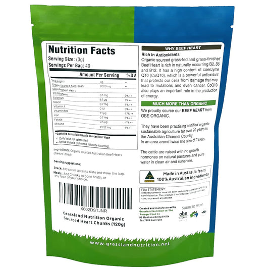 Organic Grassland Nutrition Freeze Dried Chunks with Q10, Vitamin B2, B6, and B12 for Energy - 120g