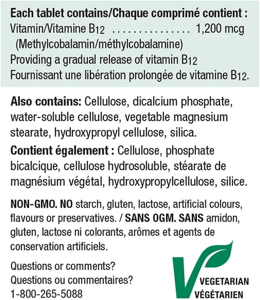 Slow Release Jamieson Vitamin B12 1200 mcg Tablets - 200 Count
