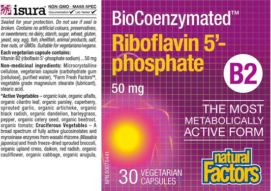 Natural Factors BioCoenzymated Riboflavin 5'-Phosphate 50mg in 30 VegCapsVendor:Natural FactorsRegular price $114.65 AUDRegular priceUnit price / per-