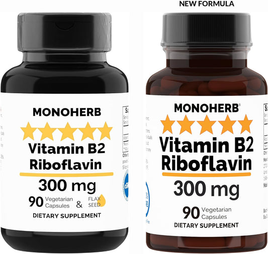 Riboflavin 300mg Capsules for Migraine Relief - MONOHERB Vitamin B2 Supplement - 90 CountVendor:MONOHERBRegular price $107.25 AUDRegular priceUnit price / per-