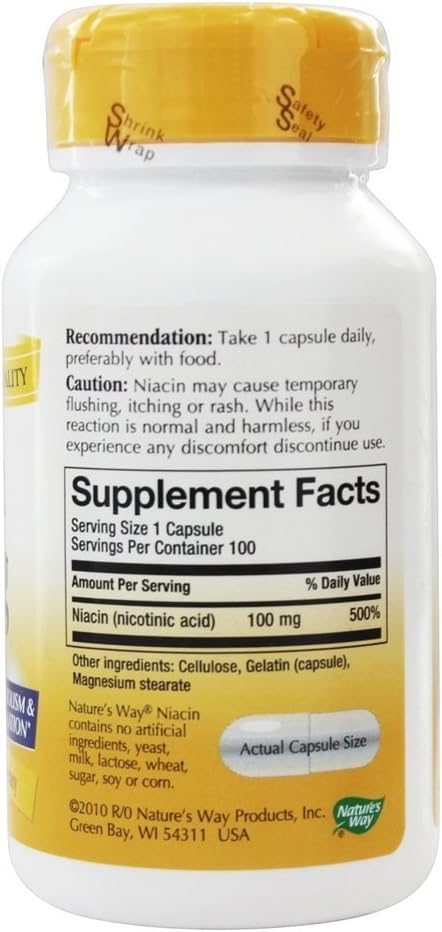 Nature's Way Niacin Vitamin B3 100mg - 100 Capsules for Heart Health and Energy Production