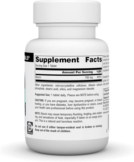 100 Tablets of Non-GMO Source Naturals Niacin 100 mg Vitamin B-3