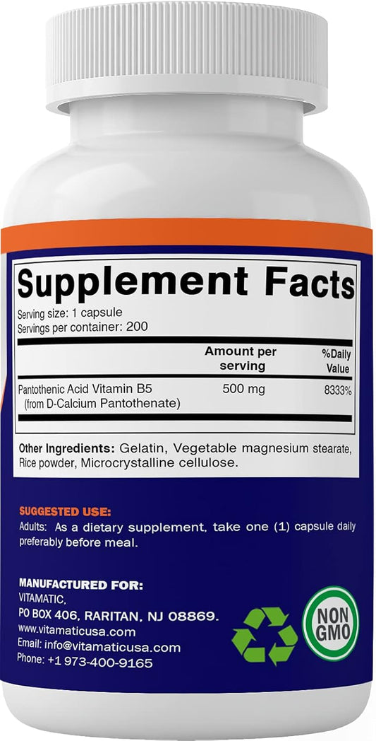 500 mg Pantothenic Acid (Vitamin B5) Supplement - 200 Capsules by VitamaticVendor:VitamaticRegular price $104.87 AUDRegular priceUnit price / per-