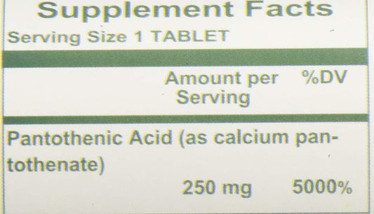 Peter's Choice B5 Pantothenic Acid 250mg Tablets - 500 Count Energy Support SupplementVendor:Peter's ChoiceRegular price $161.16 AUDRegular priceUnit price / per-