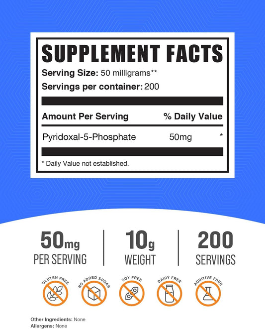 50mg Pyridoxal 5 Phosphate Powder - P-5-P Vitamin B6 Supplement, Gluten Free - 10g (0.35 oz) Pack of 1Vendor:BulkSupplementsRegular price $104.80 AUDRegular priceUnit price / per-