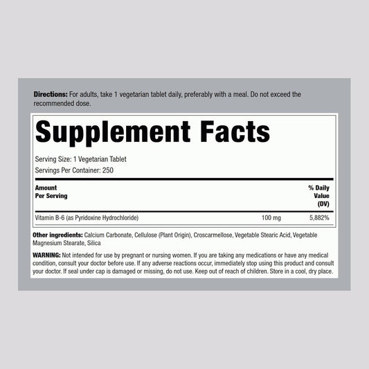 Piping Rock Vitamin B-6 100mg Tablets - Pyridoxine HCl Supplement, 250 Count - Non-GMO Vegetarian FormulaVendor:My StoreRegular price $93.75 AUDRegular priceUnit price / per-