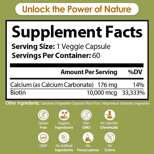 Biotin 10000mcg Capsules with Calcium for Hair Skin and Nails - Vegan Supplement for Hair Growth 60 CountVendor:NutradoraRegular price $122.16 AUDRegular priceUnit price / per-