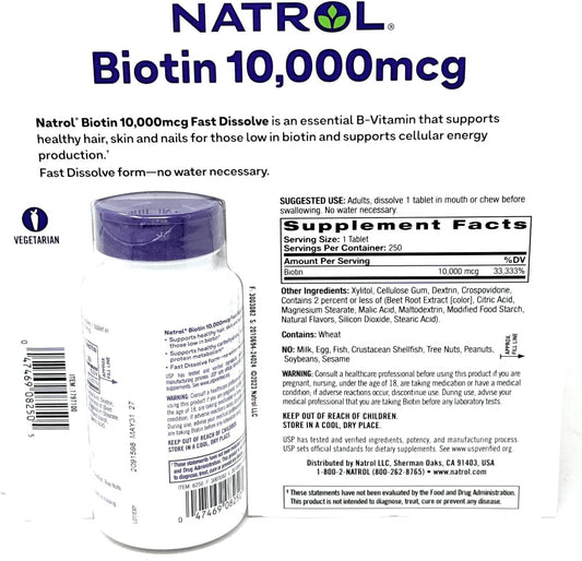 Natrol Biotin 10,000 mcg Fast Dissolve Tablets - 250 Count Bottle
