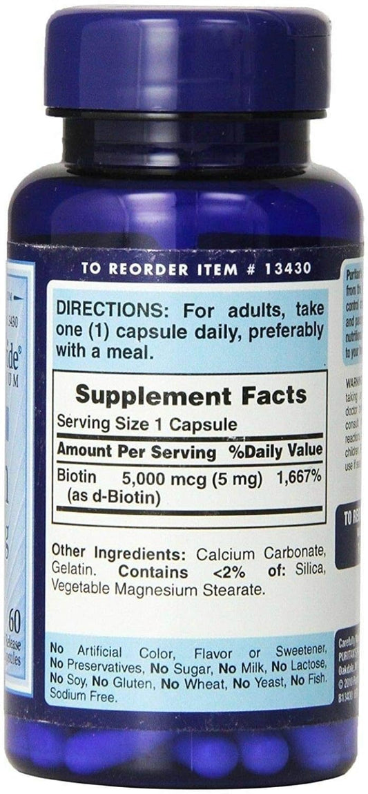 Puritan's Pride Super Biotin Vitamin Capsules 5000 Mcg - 60 Count Pack