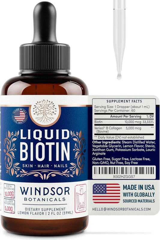 Female Health Bundle: Liquid Biotin with Collagen for Hair Growth, Prenatal Vitamins with DHA and Folic Acid by WINDSOR BOTANICALS